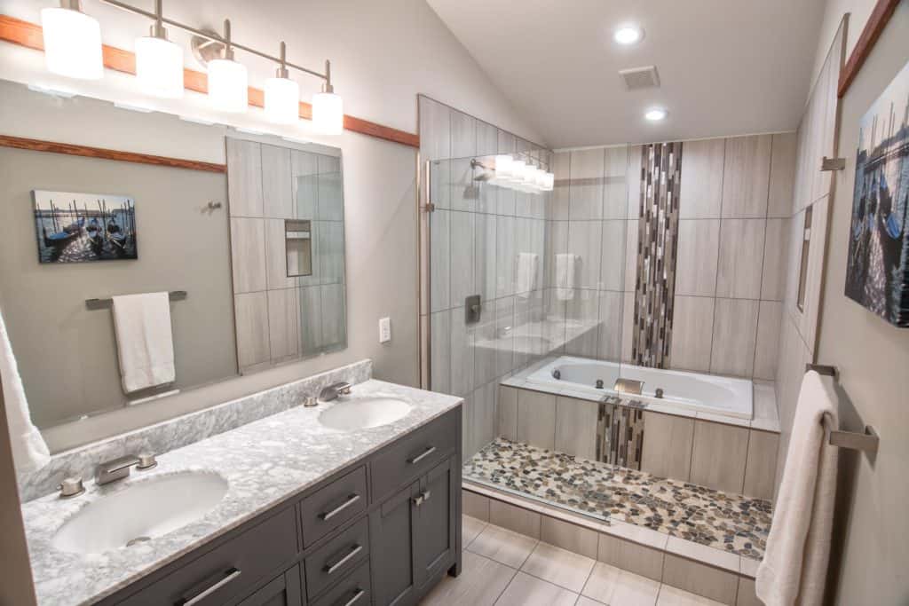 A luxurious bathroom, one that includes double vanities, a spa or whirlpool style tub, a 21st century shower, wall sized mirrors, specialized lighting, custom tile work – is exactly what you need to take a relaxer from the rat race. And don’t forget about that guest bath or half bath.